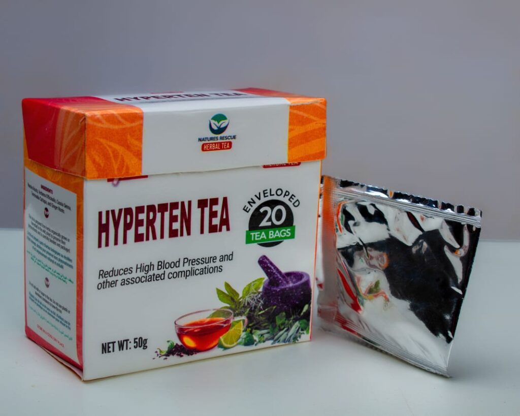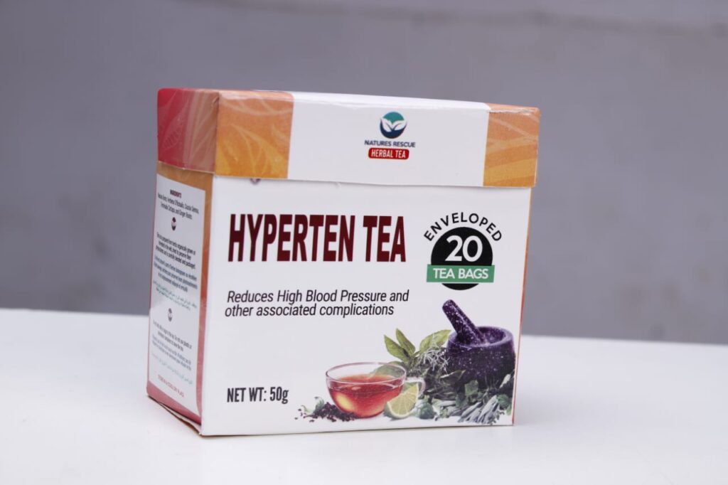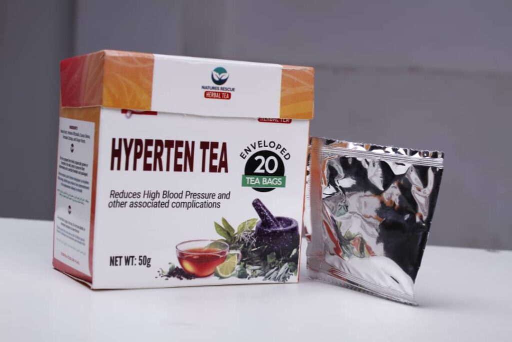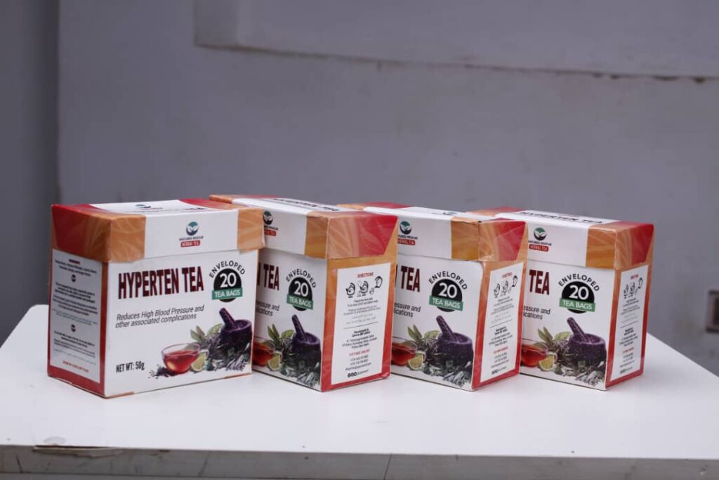 The product is called Hyperten Tea — It was formulated specifically for the Nigerian body, and approved by NAFDAC.