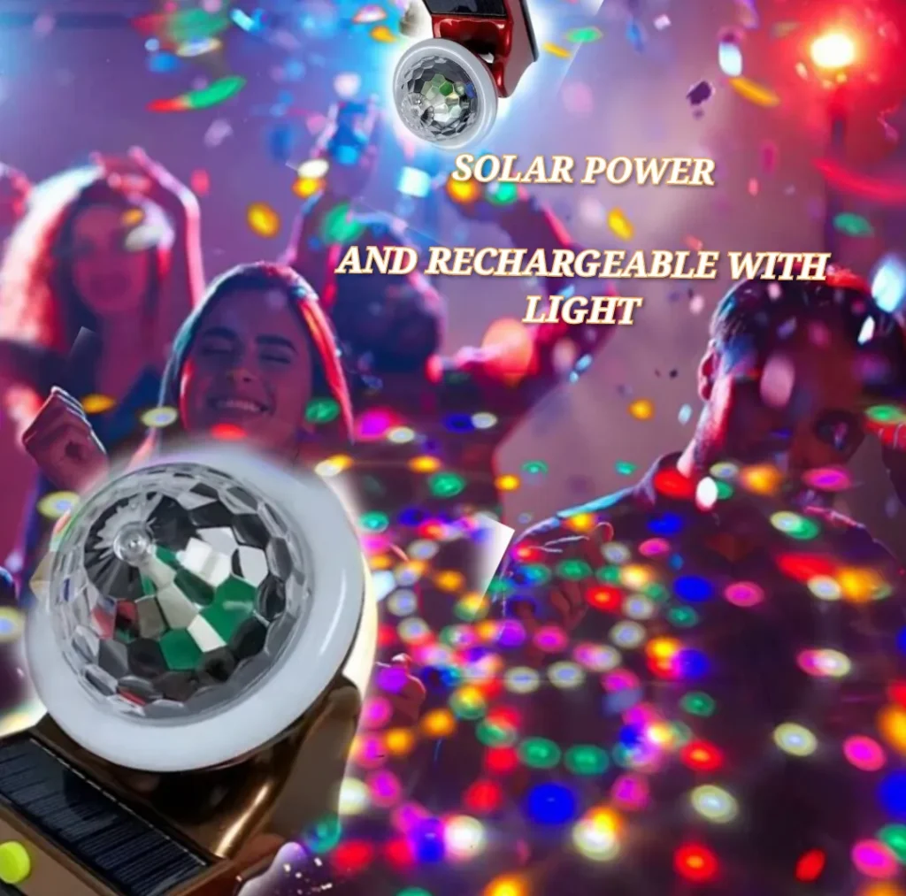 It’s a portable, solar-powered, multicolor mood light that rotates, changes colours, and lights up any event or room…