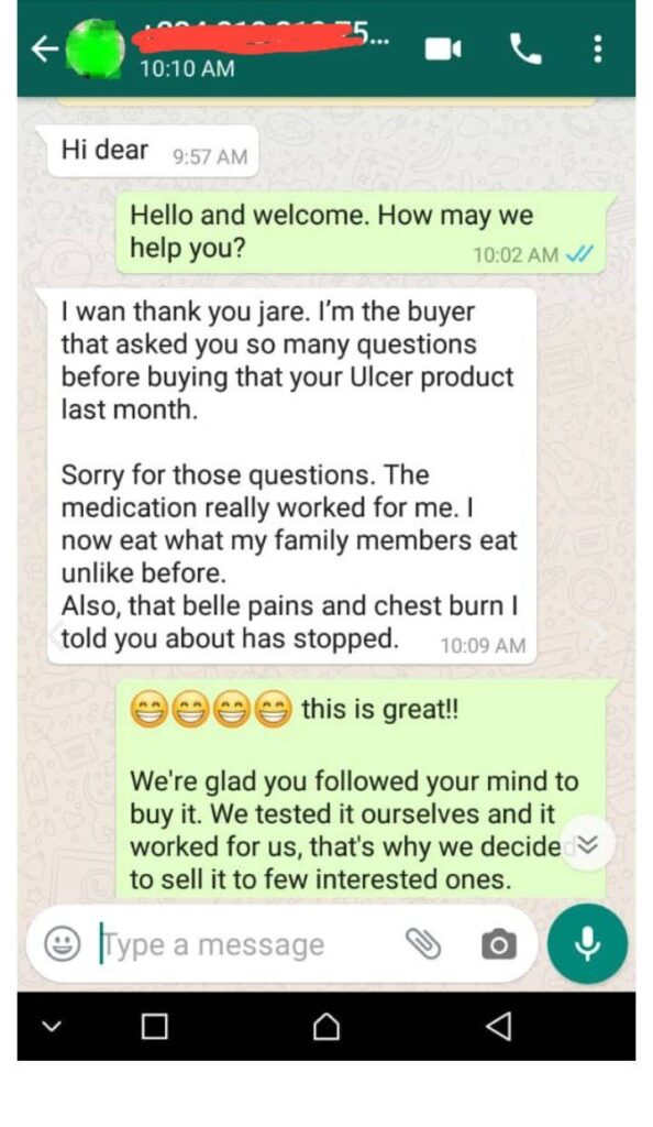 Use Olsa Powder for 30 days. If your ulcer pain doesn’t go away, call us, and we will refund your money fully. No stress, no questions.We’re confident because thousands of Nigerians trust Olsa Powder.