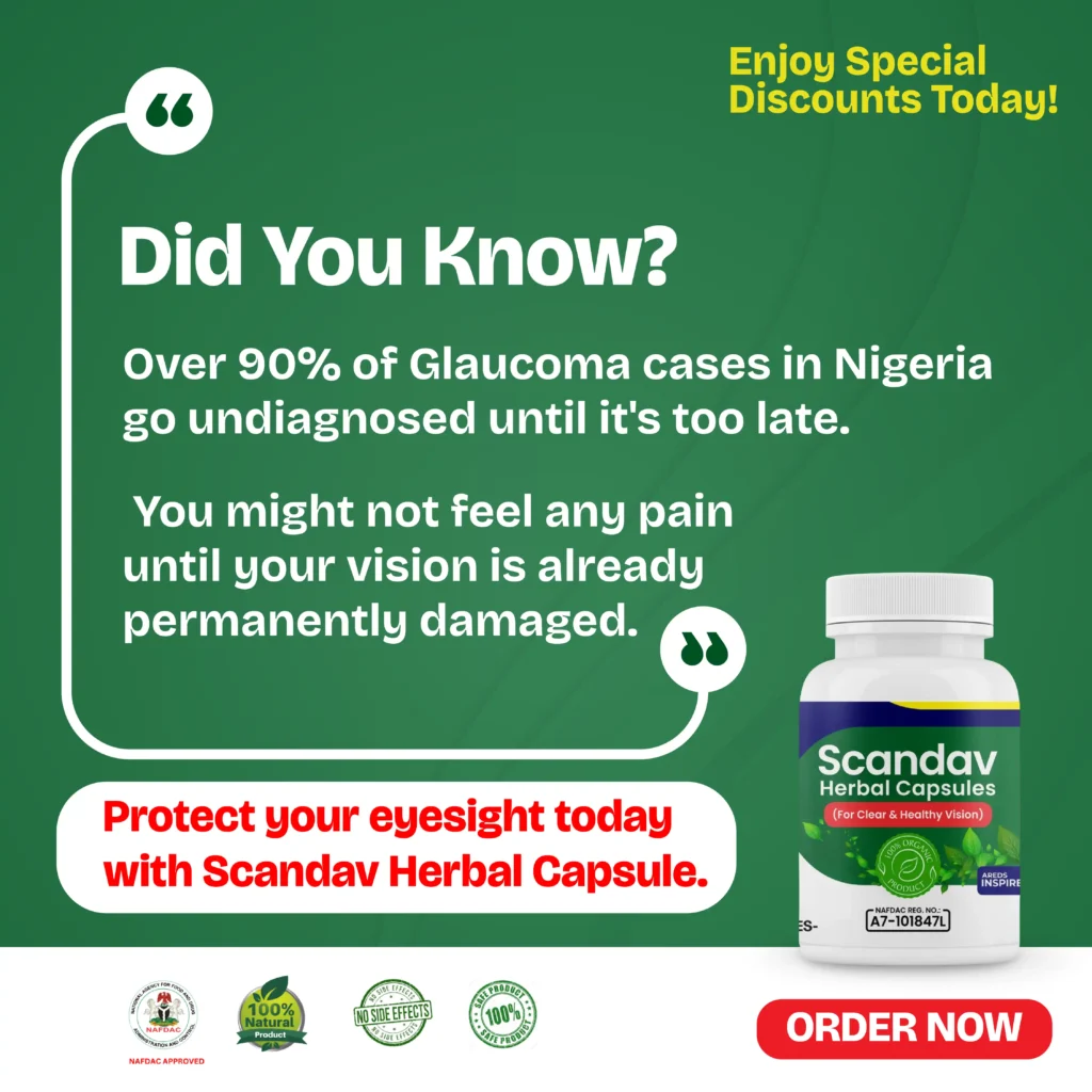 Scandav Herbal Capsule is 100% Natural, NAFDAC Approved, and has no side effects. It is made from powerful  herbs that have been used for generations to heal the eyes.