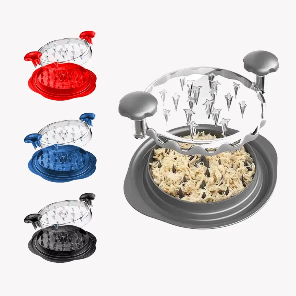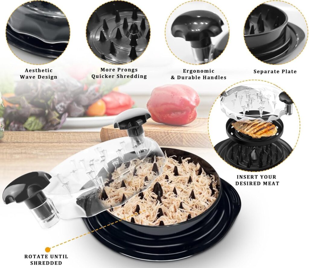 It is a smart manual gadget that shreds cooked chicken, beef, pork, or vegetables in seconds.